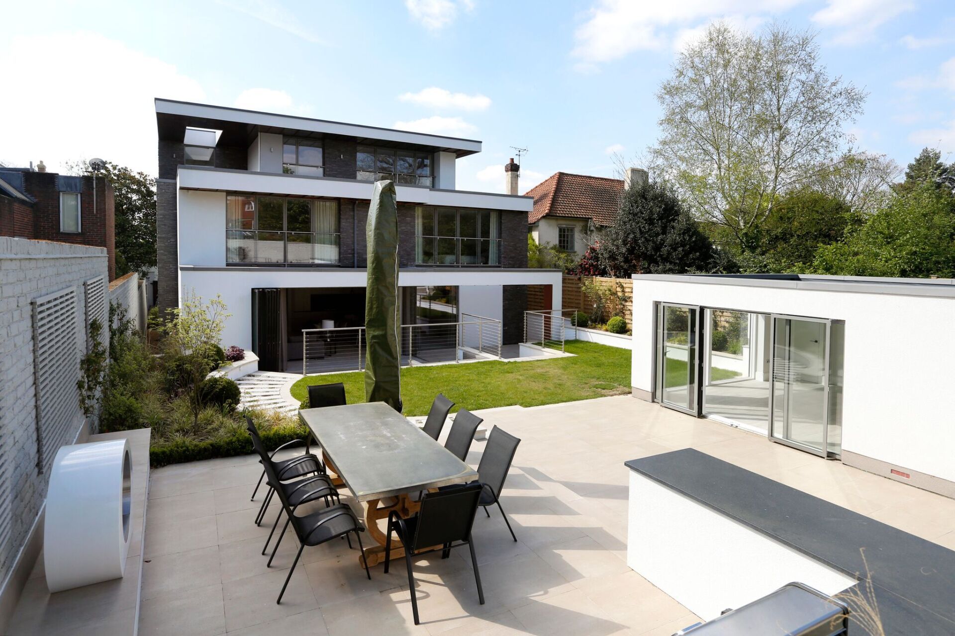 Novo is an outstanding contemporary 4,400 sq.ft. design and build on Copse Hill, Wimbledon. The design includes a unique selection of external materials including copper and slate brick cladding.